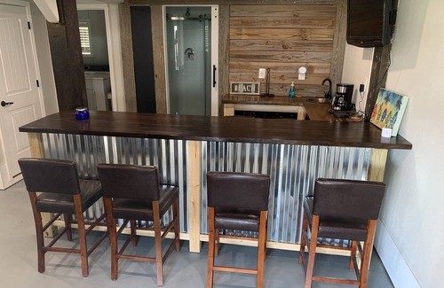 Downstairs (SEPARATE) is an entertainment (bar) area, full bath, laundry room (with washer and dryer) and 4 additional single beds (one bunk bed and a trundle bed).