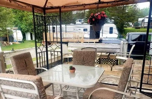 Brand New This Year! Located high above West Lake for an incredible view of the Sandbanks Dunes and West Lake Water Park. This is the perfect spot for a family vacation. The Kayaks are also free and the Stand Up Paddle boards. The property has 3 bedrooms, a master and 2 rooms with bunk beds along with a pullout couch. The modern kitchen is fully stocked with a breakfast table. The full size bathroom has a large shower and vanity. Outside the living space is just as big as inside, spend the nights around another dining table or staring at the stars and Water Park from the large deck. The cottage is located in a family orientated trailer park with excellent neighbours and quiet time every night at 11pm. This property also comes with a FREE Sandbanks Beach Pass.