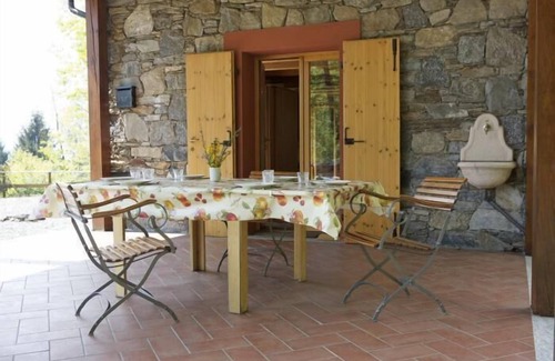 The approximately 100 m² large free-standing "Il Rustico Piemontese" is tastefully furnished. Due to the exceptionally beautiful and idyllic location on a large, sunny, 1.500 m² sunny hillside property right on the edge of the forest, this house is ideally suited for nature lovers who want to get away from the hustle and bustle of everyday life for a while. From the property and the large porch you can enjoy a fantastic view of the lake, Intra and the mountains. Here on the edge of the nature reserve Val Grande, you can go directly from the house demanding hikes or discover romantic villages, which are only accessible on foot. In about 5 minutes you reach the village of Miazzina with a restaurant, bar and shopping. However, if you are longing for the rest of the world, you will have free WLAN access to the Internet. From the car parking lot a 200-meter-long walk takes you through the forest to the house. Our tip: Take small bags and backpacks instead of suitcases and do not forget to pack flashlights! Note: The ignition of open fire on the property or in the adjacent forest is not allowed for security reasons and is punished by the municipality of Miazzina with high fines. Ground floor: living / dining room with satellite TV, pull-out sofa bed for 2 persons, fireplace and access to the veranda and the plot Separate kitchen with dishwasher and microwave Bathroom with bidet, small bathtub with shower, washing machine and window Approx. 18 m² covered porch with breathtaking sea view Approx. 200 m² large gravelled outdoor area with breathtaking sea view Approx. 1. 500 m² hillside property with fantastic view of Intra, the lake and the mountains First floor: bedroom with two single beds, which can also be placed next to each other 2. Bedroom with 2 single beds, which can also be placed side by side 2. friendly bathroom with shower and window