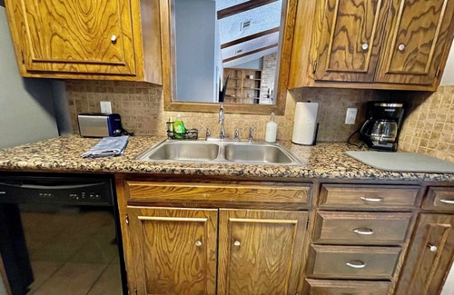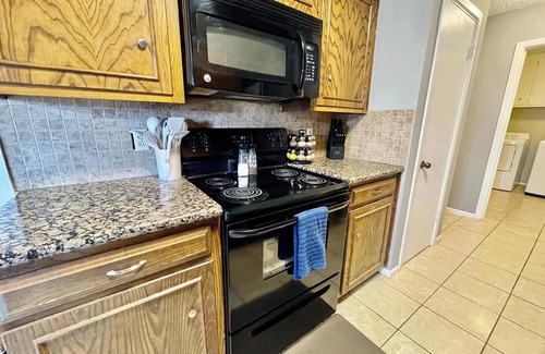 The kitchen is stocked with everything you should need to prepare a meal or enjoy take-out from one of Lubbock's many restaurants. The adjoining dining table will seat 4-6 guests so that you can enjoy your meals or play a game together.