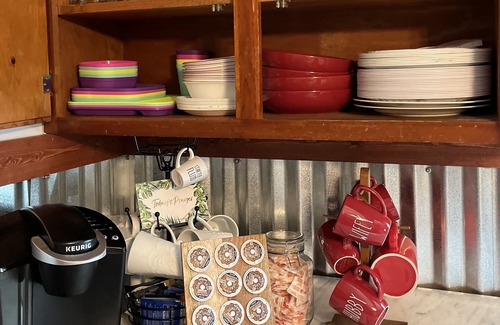 Granny's Bunkhouse features comfy beds, hardwood floors and a beautiful sunrise right out the backdoor!! No neighbors behind, or beside you only livestock and wildlife! Spacious bathroom to get ready for the town!