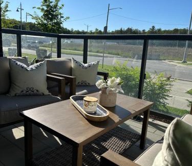 Featuring a garden, Friday Harbour Resort provides accommodations in Innisfil. This property offers access to a balcony and free private parking. With free Wifi, this 1-bedroom apartment features a flat-screen TV, a washing machine, and a fully equipped kitchen with a dishwasher and oven. Towels and bed linen are available in the apartment. The property has an outdoor dining area.