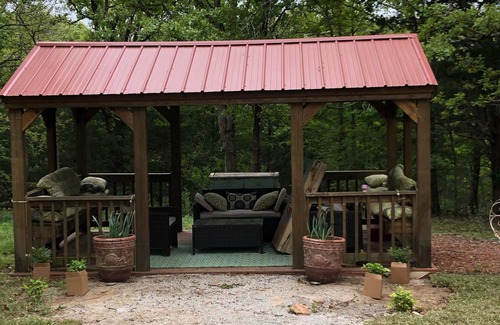 Beautiful cabin for two guests. We are 1.4 mile from Marietta Landing, 6 miles from Lake Murray State Park and Golf Course, only 30 minutes from WinStar entertainment. Somewhere Landing’s Frigg's Haven is a compact cabin that includes luxurious linens, fresh-ground fair trade coffee, a variety of teas, hot chocolate, champagne on arrival. Relax in the gazebo or make s’mores in the fire pit. Furkids welcome (fee required). Close to many Southern Oklahoma attractions, return to Frigg's Haven and Somewhere Landing to relax and restore. You will enjoy the stay!