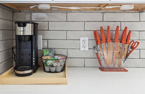 Step inside and feel instantly at home. The open-concept living area features warm, earthy tones and natural textures, offering a calm and inviting vibe—perfect for unwinding with your favorite shows on the 4K HD smart TV. Whether you’re cooking a full meal or just grabbing a snack, the fully equipped kitchen is ready for whatever you’re in the mood for. At night, sink into the plush queen memory foam bed wrapped in soft, high-quality linens for a truly restful sleep. And when it’s time to refresh, enjoy the spa-inspired bathroom stocked with eco-friendly toiletries.