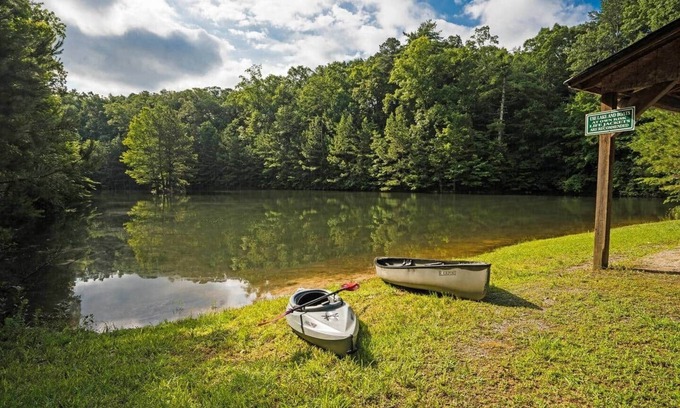 Frog Pond Hollow is the magical escape you have been longing for. Nestled on a leafy hillside, up in the Blue Ridge mountains, it has something for everyone! Spend your days kayaking or canoeing around Frog Pond or swimming in the seasonal pool! Spend your evenings soaking in the hot tub or hanging out in the Harlem-themed game room complete with billiards, ping pong table, foosball and dart board. These idyllic three acres can be the backdrop of your family’s most memorable vacation. When it comes time to choose your sleeping space, perhaps you would like to stay in the Frida Kahlo room, or maybe the Gustav Klimt room? Or perhaps the Georgia O'keeffe room would strike your fancy. If you are an early riser, sleep in the tower and arise with the sun! There is ample sleeping room, with bunk beds and a sofa bed on the bottom level as well. Frog Pond Hollow can sleep up to 14 people comfortably. The pool/hot tub and pond are completely private and Frog Pond is only 2 miles from Carter’s Lake! The pool is indeed seasonal and is open from roughly April-October depending on the weather. We have recently updated our game room! We have added Foosball, axe throwing (kid friendly-all plastic not sharp), a new smart TV, new pool table and magnetic darts! Frog Pond Hollow is tucked away, deep inside a gated community. It is very secluded and surrounded by woods. We have onsite parking available. This is a very private road with lots for sale. We are 1 of the 2 houses that are on this street but far enough away we don't hear each other. This is a very peaceful & quiet environment. WIFI: We recently updated our internet and are so happy with our new 5g fiber optic internet. A big step up from the satélite we used to have! However, we do have a some windy and a stormy weather from time to time that could obstruct your service. Please contact your manager as soon as possible se we can troubleshoot or schedule a technician to make an onsite service call as soon as possible Must sign the waiver before using any of the water features! Keep in mind our pool is nestled in a very rural setting. While it is serviced weekly by our trusty pool guy and cleaned by our cleaners as well, you will likely still have to clean out some bugs and debris. We hope you understand and enjoy!