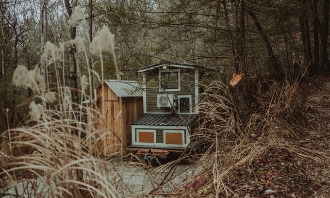 Froggy Bottom is located in the funky and unique Cave Hollow area here in the gorge. In addition to this tiny house, there are several treehouses and cabins located farther down the gravel road...along with a pair of our farmer-friends...so watch out for a few chickens on your evening stroll!