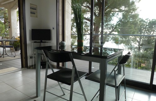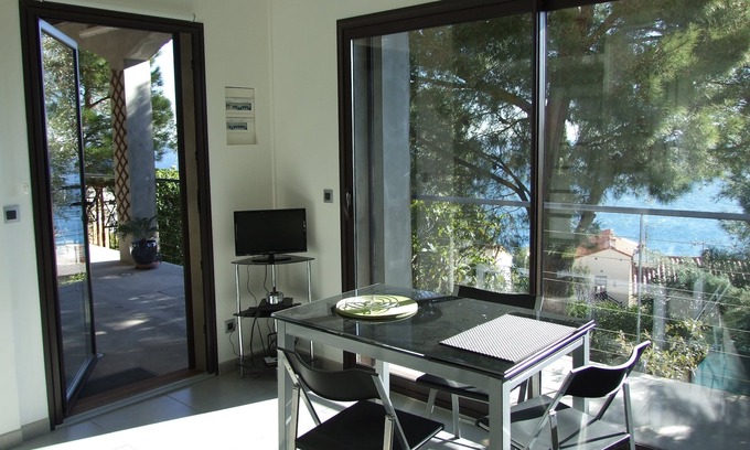 Our fully equipped luxury studio located in a quiet area will offer you a bright and comfortable place close to shops and the sea. A bed in 140 occupies the sleeping area. In a privileged setting, the garden and the covered and furnished terrace will delight you with a magnificent view of the sea, particularly appreciated during your moments of relaxation and also your meals.
