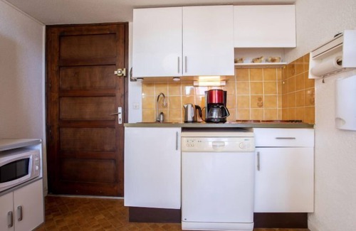 2-room apartment 28 m2 on 3rd floor. Living/dining room with TV (flat screen). Exit to the terrace. 1 room with 1 french bed (1 x 140 cm, length 190 cm). Kitchenette (4 hot plates, dishwasher, microwave, electric coffee machine). Shower/WC. Electric heating. Upper floor: (steep stair) gallery 13 m2, with sloping ceilings with 1 french bed (1 x 140 cm, length 190 cm), TV (flat screen), DVD. Terrace 6 m2. Terrace furniture, electric barbecue (portable). Beautiful view of the sea and the mountains. Facilities: washing machine, iron. Internet (WiFi, free). Parking. Please note: smoke alarm. Instead of an enclosed bedroom, some sleeping areas are located in an open-plan area (gallery, alcove, etc.). Offer by a private individual according to Art. 155, IV of CGI.