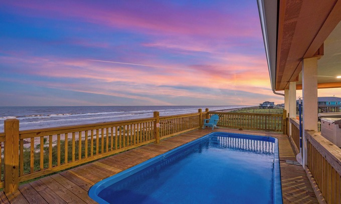 Front Row Pool - chilled & heated - hot tub- beachfront | House in Bolivar Peninsula