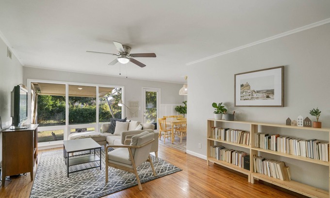 With all of Tulsa's Midtown charm, this 3 bedroom, 1 full bath house will sleep comfortably 6 quests. Each room has a queen size bed and plenty of closet space. High speed internet throughout the whole house. Open living room with big windows that let in lots of natural light, 42in flatscreen TV with access to many Smart features such as Netflix, YouTube, HBOMax, Amazon Prime, etc via your personal login details through ROKU. Dining Room is perfect for a cozy breakfast or homemade dinners, and is adjacent to the kitchen. Kitchen is stocked with oils, all the essential spices, a brand new Keurig and coffee pods, and a complete set of cookware for all your cooking needs. Backyard is very spacious and there is a patio table and chairs for your enjoyment. Keep your eyes peeled because we have lots of Bunnies running around our neighborhood!