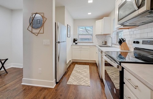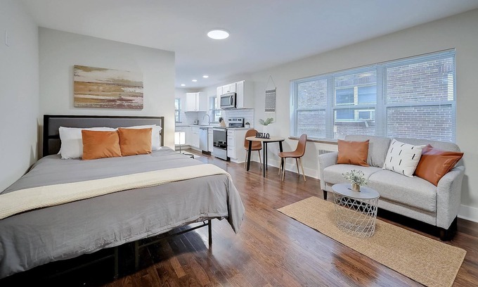 Our studio apartment is fully furnished with everything you & your guest need to enjoy your stay in Cincinnati! In the kitchen, you'll find beautiful appliances, a Keurig coffee maker, and basic cookware to cook simple meals for a cozy night in! There's free WiFi! A communal laundry room is located onsite for your convenience.