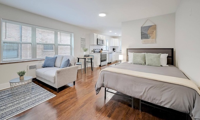 Our studio apartment is fully furnished with everything you & your guest need to enjoy your stay in Cincinnati! In the kitchen, you'll find beautiful appliances, a Keurig coffee maker, and basic cookware to cook simple meals for a cozy night in! There's free WiFi! A communal laundry room is located onsite for your convenience.