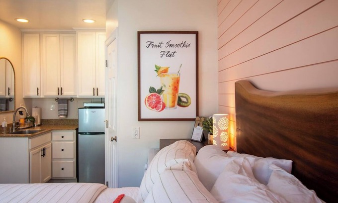 Recently remodeled, the space features a brand-new queen-size bed with quality bedding, and a Smart TV with complimentary Netflix access. The full-sized bathroom includes a modern walk-in shower for a refreshing end to your day.