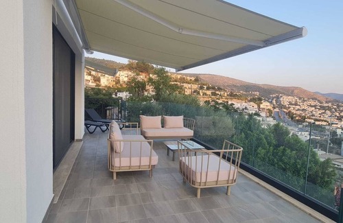 Unique Brutalist Design Apartment in Bodrum with Panoramic Castle View