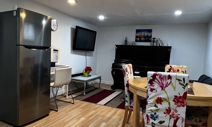 A well-lit basement in a secure neighbourhood, conveniently close to a shopping mall, grocery store, bus station, and more. Enjoy your privacy with a separate entrance, private bathroom, and kitchen. Free parking available, but kindly note no parties or unaccompanied teens.