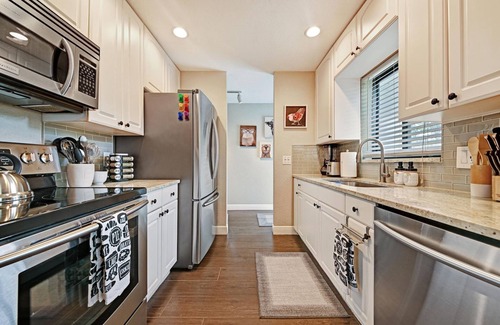 The home is fully equipped with all the amenities you require for a comfortable stay, including a full kitchen, plush beds, and a spacious living area.