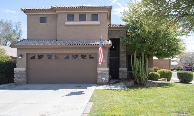2 secondary bedrooms upstairs connected by bathroom with jack & jill bathroom area. Balcony off Master bedroom to unwind. In total sleeps 10-14 people and kids. Extended back patio and pavers with area to sit outside and relax during the evening time to enjoy the Arizona weather.