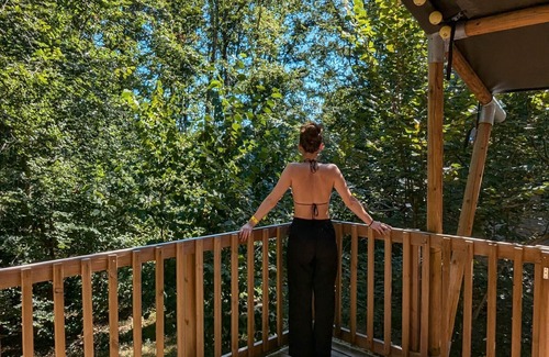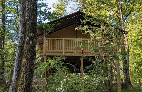 Fully equipped safari tent in the middle of the trees with shared pool is located in Biron. Fully equipped safari tent in the middle of the trees with shared pool provides accommodation, featuring Balcony/Terrace, Security/Safety, Sports/Activities, among other amenities. This Cabin features Balcony/Terrace, Security/Safety, Sports/Activities, to make your stay a comfortable one.