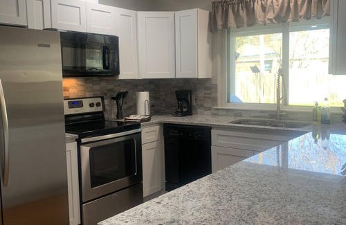 Enjoy the open floor plan with a brand new kitchen featuring white shaker cabinets and granite countertops. Enjoy large 65" smart TV in living area, grilling on the covered patio and swimming pool in warmer months! All this and a dedicated work from home space makes this home the best of all worlds!