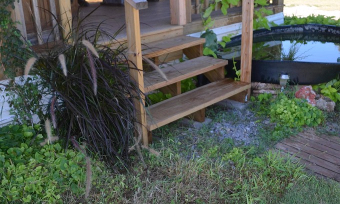 Full kitchen and bathroom with a porch that has a bench seat over looking a gold fish pond and great landscape views. Dishes, bedding, towels, and bathroom accessories. Porch has smoking area, no smoking inside, ashtrays provided on porch.