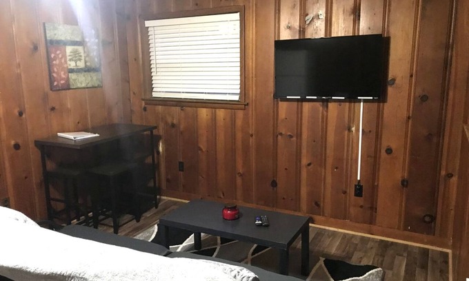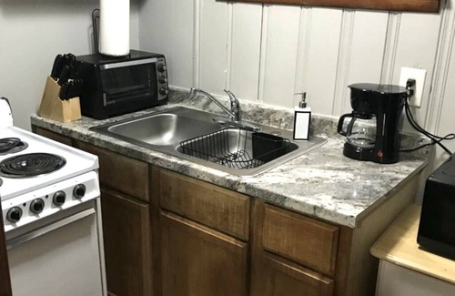 The front studio living area has a futon couch that folds out into a full-size bed. There are sheets, pillows, and a comforter in the unit. Towels and washcloths are included for two guests. There is a washer and dryer available inside this unit. You will be able to relax during the evening with the available television and DVD-Player located in the living room/bedroom area with a DVD player to watch Redbox movies. Redbox is a 3-minute drive away, near the local Family Dollar. Tenants will also be within walking distance to restaurants, including Lynn’s Drive-In and Gino’s Pizza, and areas to shop such as Dollar General and Gary’s Market. Razor and ATV riding are legal on all streets and backroads in this town. Truck and trailer parking is available in the included parking area so tenants may start their off-road adventure as easily as possible!