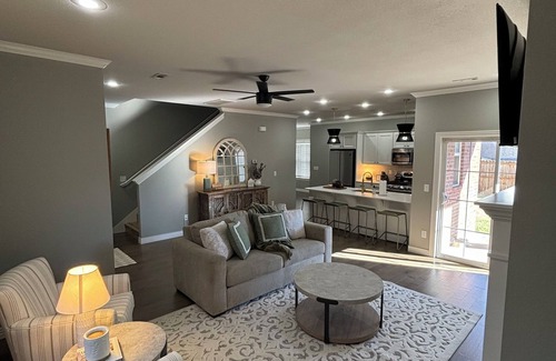The Cozy Cottage offers a wonderful stay for guests with 3 well-stocked bedrooms - one with a king bed, one with a queen bed, and a bunk bedroom. The 2.5 bathrooms are equipped with hair dryers & all shower amenities. Enjoy the superb amenities like a coffee bar, games, plush linens, comfy beds, fitness equipment, WiFi, washing machine, and AC. We're centrally located as we're minutes from I-40 & approximately 20 minutes from Fayetteville & Bentonville!