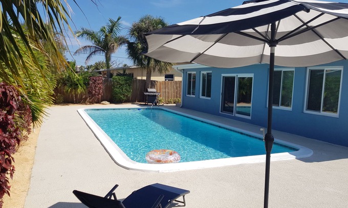 Like new! Beautifully decorated, 3 bedroom, 3 full bath (plus outdoor shower) beachside house with amenities, pool, and great location! Only a couple blocks from uncrowded beaches. Private pool completely renovated including new tile and deck. Entire house has been fully renovated and is carefully kept up. Large, new upscale kitchen, all new tile bathrooms, new furniture/mattresses, everything high-end. Kayaks, bikes, foosball table, professional dartboard, beach and pool toys, 60" and 43" TVs with Netflix and & Amazon Prime Video included. Open concept layout with split floorplan. Enjoy your own private retreat close to the beach and all the best attractions. One hour from Disney World, Universal, and other Orlando attractions (easy traffic-free drive). 45 minutes from Kennedy Space Center. 25 minutes from Space Coast Stadium. 10 minutes from Melbourne-Orlando International Airport. Fully stocked with everything you need for a turn-key beach vacation!