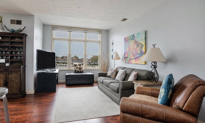Completely Updated Harbor Village Condo! This condo is exactly what you've been looking for. Outstanding Harbor (and even some Lake Michigan!) views from the entire unit. Located right next to the indoor and outdoor pools and a 5-minute walk to the beach. Updates include newer flooring, kitchen and appliances. You'll be more than comfortable with up to 5 guests in this spacious open living/kitchen/dining space.