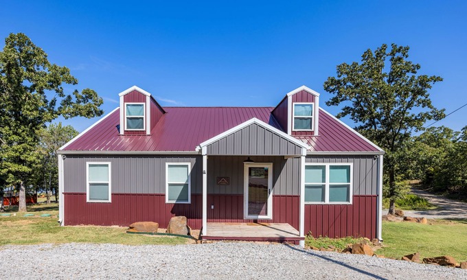 Fun Beachfront Retreat! Amazing View, Huge Covered Porch, EV Charger, and more! | House in Stigler