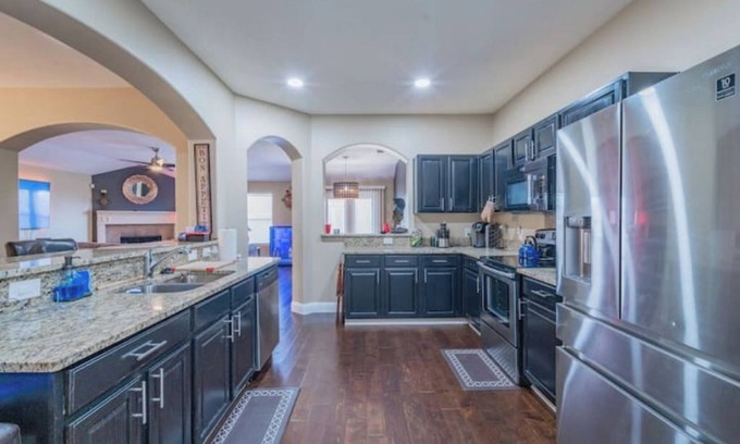 Description does this home no justice! Minutes away from the new PGA Headquarters, The Star in Frisco, Toyota Stadium, Little Elm Beach, and more! Forget your worries in this spacious and stylish abode offering over 1,900 sq ft of open space. This home also offers an open concept kitchen overlooking the main living area and the bar style dining set. Mounted TVs with complimentary streaming services included in every room and a stocked bar to enjoy your stay even more!