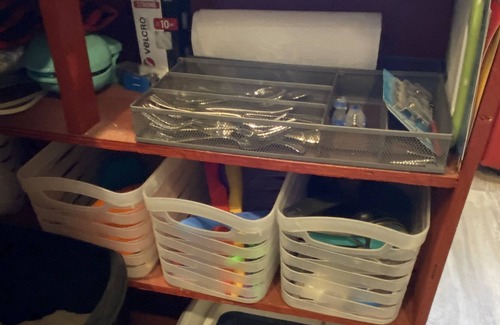 The 340 sf space is well designed with all the amenities you will need. The kitchen area contains what you need to prepare meals. The open floor plan bedroom contains the full bathroom so space is never an issue. A full size shower fits fine!