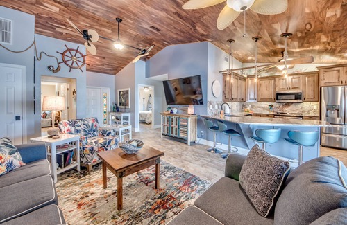 This property is a boater’s and fisherman’s delight. Fully stocked, and beautifully furnished 3-bedroom 3-bathroom waterfront Cottage in quaint Matlacha with a huge dock, heated pool and spa, and fishing poles. Minutes to Gulf of Mexico. Close to Bokeelia. Boat rentals and fishing tours available. Full electricity included - no further fees or costs after booking. Sleeps 6