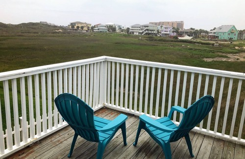 King Master Down with Large Tub and Separate Shower, King Room Up with Balcony for Ocean Views, Full Size Up and Down Bunks in the 3rd room up. Every room includes TVs.Our kitchen is large and open to the living room and dining room. Our Home is Nice and Bright with Lots of Fun Artwork. We Provide Beach Chairs, Horseshoes, and Plenty of Toys to take to the Beach. We have a large Charcoal Grill in the Fenced Backyard to grill Your Catch of the Day! This Home is also Perfect for The Winter Texan! Fun Murals! Our Home is not on stilts so no steps to walk in. 3 DAY Minimum on Holidays.
