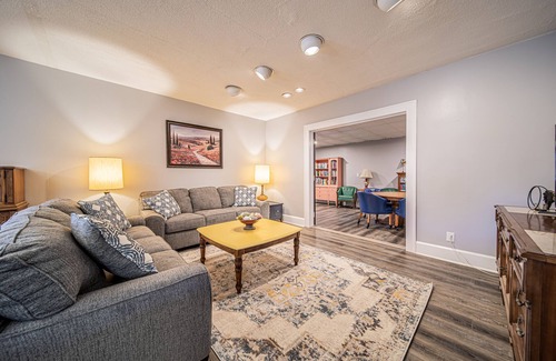 Spend the night in a restored funeral home from the 1940's. Meticulously designed for groups wanting to explore Ashtabula Harbor or nearby Geneva on the Lake. This luxurious space was designed to be a home away from home and is full of color and charm including a display containing artifacts from the buildings history. Everyone will enjoy the space which has a full game room including a pool table and claw machine, a fully stocked common area and 6 distinct bedrooms each with something special.