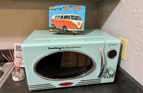 Go back to a time of simplicity, choose a vinyl record from our growing collection, listen to the music flow through your ears and just vibe out while enjoying a warm cup of coffee, margarita, or a glass of wine. This colorful MCM beach property offers a comfortable retreat for guests to have a FABULOUS & MEMORABLE stay! Amenities include; a brand new memory foam KING size bed, 2 brand new memory foam QUEEN size beds, all BRAND new furnishings, large refrigerator, fenced in backyard for Fido, an iron, AC, heating, hair dryer, WiFi, a washing machine and dryer.