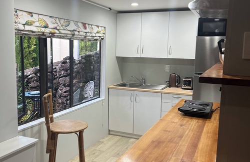 Stay in the heart of Paihia, a 2-minute walk to the beach, shops, bars, and more. This secure, cosy studio is perfect for one person or a couple with a small pet. Fully equipped for a comfortable stay, and it includes a private car park.