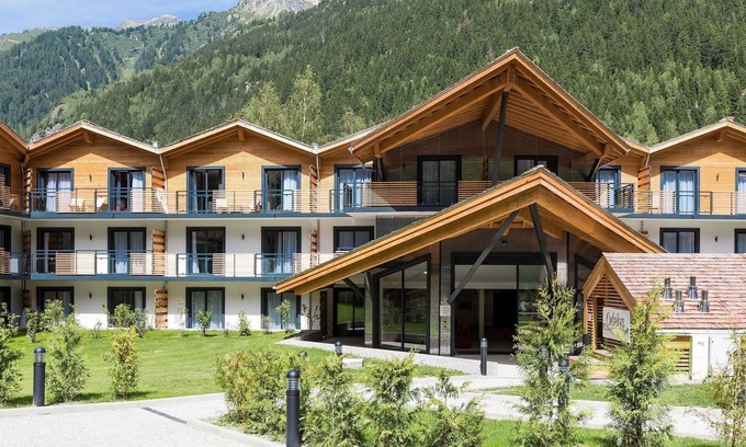 The Résidence with authentic and at the same time contemporary architecture welcomes you with comfortable and attractively furnished apartments. They all have a terrace or balcony with furniture. For relaxation after an active day of vacation, the heated, semi-covered pool and a wellness area (the latter for a fee). To reach the center of the village, you just have to take the bus, which stops right in front of the residence. The different types of apartments include: - 2-room apartment for 4 people (FR-74400-159) - 2-room apartment for 4/5 people (FR-74400-160) - 3-room apartment for 6 people (FR-74400-161) - 3-room apartment for 6/7 people (FR-74400-162)