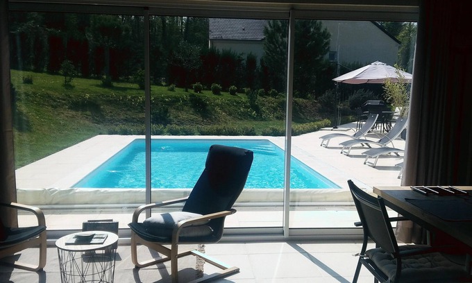 At the heart of the great wines of Chablis, our Guest House is a calm, warm and contemporary place, conducive to rest and well-being. Taste the sweetness of life of its 2500 m² of gardens and its attentive welcome. Discover the simplicity of its layout. Enjoy gourmet moments (dinner on demand) and moments of relaxation by the pool heated to 28 ° from June to September.