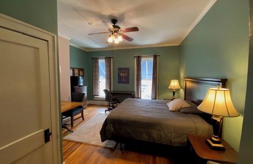 We specialize in housing for traveling medical professionals and/or corporate interns. Our downtown residence is housed in a historic building, fully renovated with original features like high ceilings, big windows, original wood floors and exposed brick in some units. Each suite comes with everything you need to be home, away from home. Fully-equipped kitchen with all appliances including dishwasher. Individual heating/ac controls in each suite. Free WiFi and TV with Roku. Pets are welcome because we know how important they are to you when you are on the road. Shared, free laundry facilities.