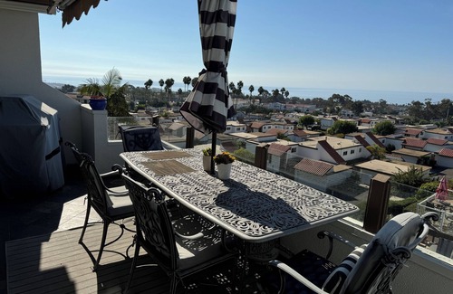 Your San Clemente adventure begins at this fully furnished ocean-view 2-bedroom condo. With amenities like WiFi, 3-TVs, AC (in master), washer/dryer, BBQ grill, stocked kitchen, and outdoor patios to enjoy ocean sunsets, guests can relax in this fantastic condo just minutes to the SC Pier and landmark beaches. The 3 decks and 3 bathrooms ensure everyone has their own space to unwind and freshen up. Master bedroom has king sized bed and couch. Extra bed room has queen bed and tub. Plus both have room for a blow-up full sized mattress (also provided).
