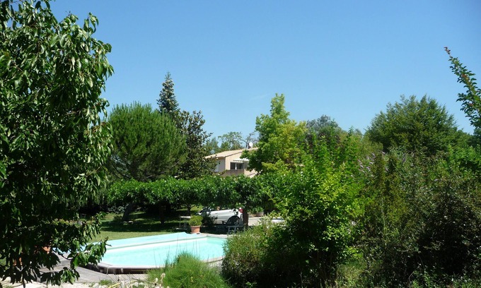 Located in the countryside, quiet, 2 km from the village 2 km from Pertuis on a plot with pool, separate 1st floor apartment with terrace, view over the vineyards.