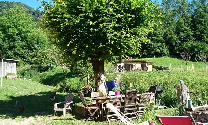 Cottage for rent in family farm at Lili's in Alex. Cottage located in a quiet area at the foot of the mountains, ideal for hiking, skiing in winter (resorts 20 min), lake 5 min ..... Farm surrounded by animals, goats, sheep, geese, chickens ...