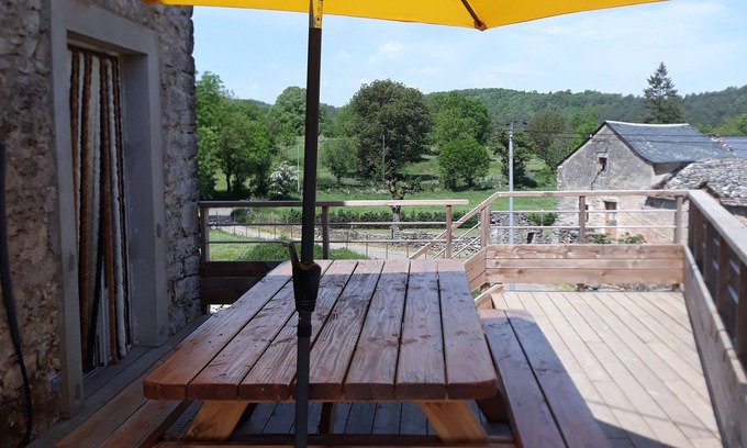 Gîte à la ferme Pièces voutées, calme, nature, animaux, 1 km de l'autoroute A75 is located in Campagnac. Gîte à la ferme Pièces voutées, calme, nature, animaux, 1 km de l'autoroute A75 provides accommodation, featuring Designated Smoking Area, Balcony/Terrace, Bedding/Linens, among other amenities. This Other features Designated Smoking Area, Balcony/Terrace, Bedding/Linens, to make your stay a comfortable one.