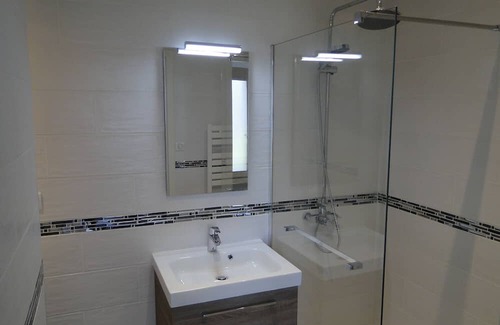 ~ Equipped kitchen, halogen hob, dishwasher, washing machine, electric coffee maker, oven, microwave, toaster, kettle, raclette and fondue set, fridge-freezer, flat screen TV (TNT: 27 free French channels ), sofa.