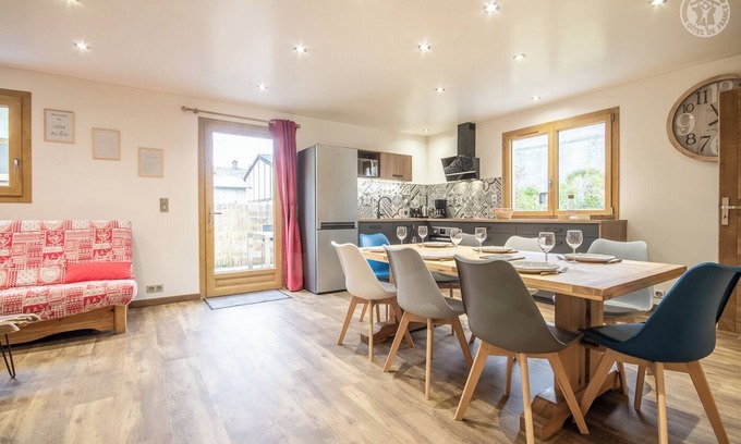 Gite in the owners' house with independent access and private terrace. Kitchen-dining room-living room (1 sofa bed 140x190cm), WC, shower room (walk-in shower), 2 bedrooms (1 double bed 140x190cm / 2 single bunk beds 90x190cm). Private car park. In a completely renovated house, the ALEO gîte is located on the Aussois plateau, enjoying guaranteed sunshine in summer and winter alike. 200 meters from the leisure base (swimming pool, wellness area, pump track). Proximity to shops and services. Warm, pleasant, bright and cozy cottage.