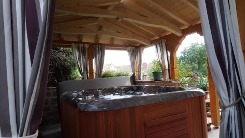Gîte "AU CADRAN SOLAIRE" is located in Triembach-au-Val, just 12 miles from Le Haut Koenigsbourg and 20 miles from Colmar Expo. With city views, this accommodation provides a patio. The accommodation offers a hot tub, free Wifi throughout the property, and a 24-hour front desk. Offering a terrace and garden views, the vacation home includes 4 bedrooms, a living room, satellite flat-screen TV, an equipped kitchen, and 2 bathrooms with a shower. Towels and bed linen are offered in the vacation home. The property has an outdoor dining area. Guests can make the most of the warm weather with the property's barbecue facilities. For guests with children, the vacation home features a children's playground. Guests at Gîte "AU CADRAN SOLAIRE" can enjoy skiing and hiking nearby, or make the most of the garden. House of the Heads is 21 miles from the accommodation, while Saint Martin Collegiate Church is 22 miles from the property. Strasbourg International Airport is 23 miles away.