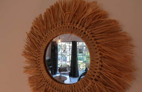 Located on the ground floor, 35 m2, you will access the Bambou gîte by an independent path, private garden 40 m2 equipped with 2 comfortable armchairs under the covered terrace, a table for your meals, 2 copacabana armchairs on the terrace side under the vine trellis which gives excellent grapes in season.