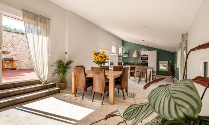Featuring a garden, Gîte la Grange du Moulin en Vendée features accommodations in Saint-Jean-de-Beugné. This vacation home provides free private parking, bicycle parking, and free Wifi. Mytiliculture Museum is 24 miles from the vacation home and Domangère Golf Course is 17 miles away. Providing a terrace with river views, this vacation home also offers a flat-screen TV, a well-equipped kitchen with a dishwasher, an oven, and a microwave, as well as 2 bathrooms with a shower and a hair dryer. The property has an outdoor dining area. Vendespace is 25 miles from the vacation home, while Natur'Zoo is 26 miles away. The nearest airport is La Rochelle - Île de Ré Airport, 32 miles from Gîte la Grange du Moulin en Vendée.