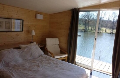 The wooden chalet, totally independent, 86m2 for 4 to 6 people (3 keys Clévacances), includes: 2 bedrooms (1 bedroom with 2 twin beds, 1 bedroom with a double bed, 1 sleeping 2 places on a small mezzanine baby cot provided;), living room with fully equipped kitchenette, 2 shower rooms (1 with WC), large terrace overlooking the pond and a covered area with kitchenette. Outdoor lounge.