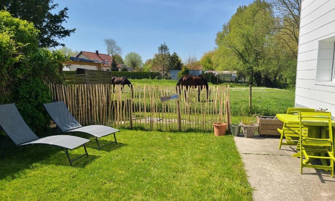 Featuring a garden, Gîte Les amoureux de la Baie features accommodations in Favières. This property offers access to a terrace, free private parking, and free Wifi. Rang du Fliers-Verton-Berck Train Station is 15 miles away and Maréis Sea Fishing Discovery Centre is 27 miles from the apartment. The apartment consists of 1 bedroom, a living room, a fully equipped kitchen with a dishwasher and a coffee machine, and 1 bathroom with an a bath or shower and slippers. Towels and bed linen are available in the apartment. The property has an outdoor dining area. Caudron Brothers Museum is 3.9 miles from the apartment, while Marquenterre Park is 7.6 miles from the property.